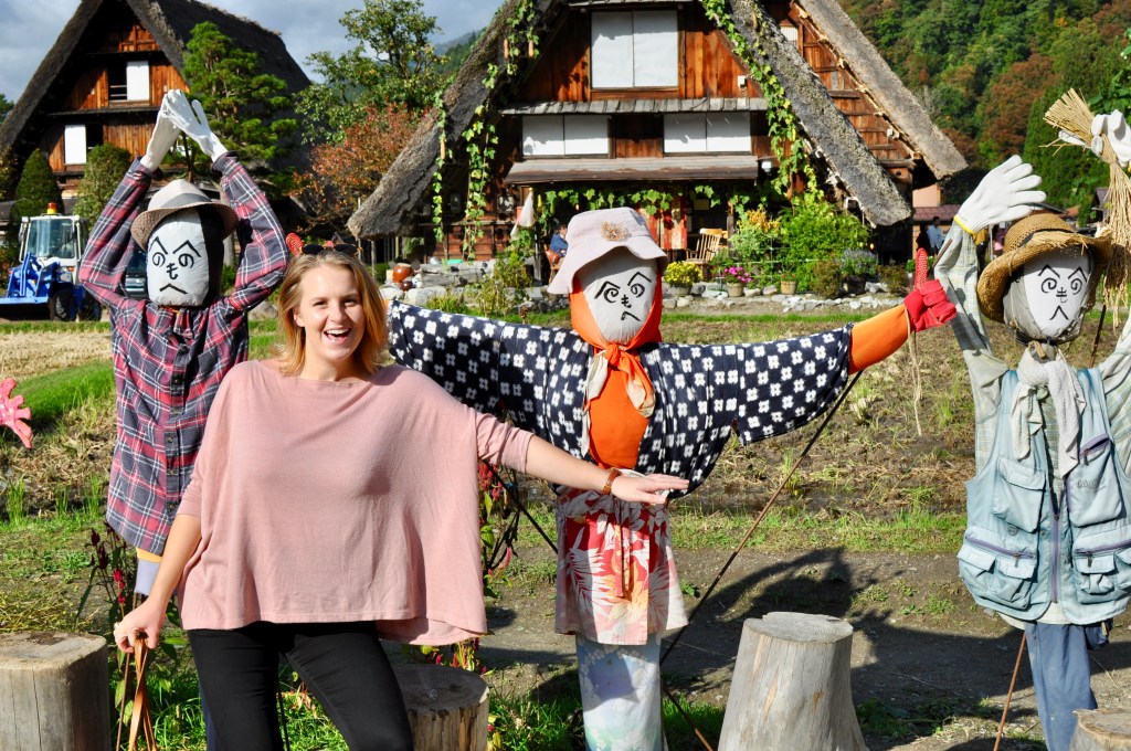 Shirikawa-go is only about an hour and a half from where I live, so a big group of us decided to pile into a few cars and make a visit to the quaint town nestled within the mountains. We had wanted to go a couple of days earlier, but the day we had arranged ended up being quite rainy. The forecast for our rain date also looked less than ideal, but we were pleasantly surprised to be winding through the mountain roads with a clear blue sky overhead and leaves beginning to turn to a warm, autumnal red.